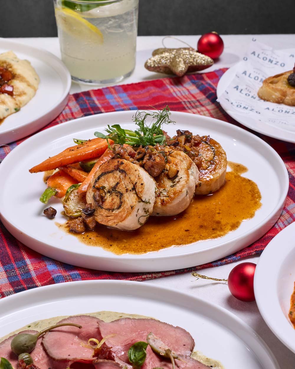 Our festive dinner at $358 features seasonal delights including Christmas Soup, luxurious Burrata Cheese, and your choice of mains from classic Spaghetti Carbonara to Roasted Turkey Breast with all the trimmings. For seafood lovers, the Octopus Risotto combines lobster bisque, shallots, and parsley, whilst the Sea Bream offers a lighter option with salsa verde and pine nuts. Round out your evening with Alonzo's Signature Tiramisu or Espresso Panna Cotta.
